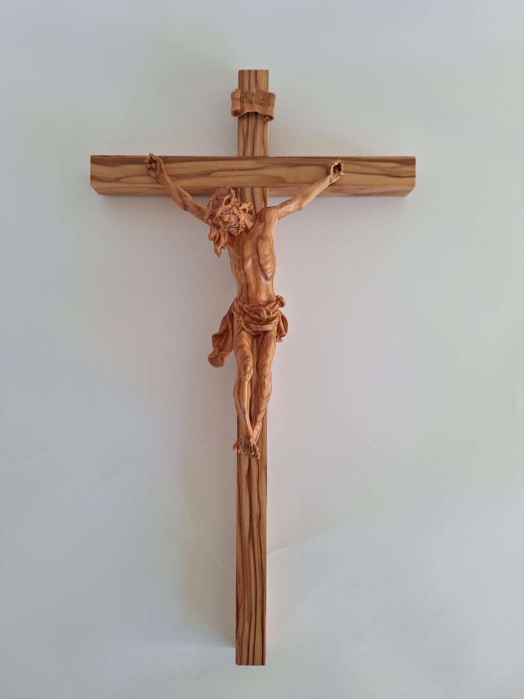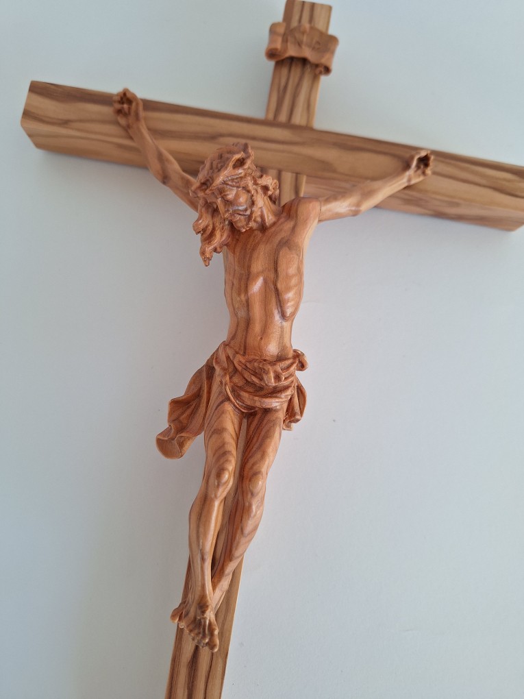 Leseni križ z Jezusom, izdelan iz kakovostnega oljčnega lesa, je pomemben verski simbol, ki v vsak prostor vnese toplino in spoštovanje. Meri 36×17 cm in je izdelan s pozornostjo do podrobnosti, saj prikazuje čudovito izrezljano podobo Jezusa. Zaradi naravne teksture oljčnega lesa je vsak kos edinstven, kar še poveča njegovo lepoto in pomen. Križ je idealen za razstavljanje v domovih, cerkvah ali kapelicah in je stalen opomnik vere in predanosti. Ne glede na to, ali ga uporabljate kot osrednji del ali darilo, je brezčasen kos, ki ga boste cenili še vrsto let.